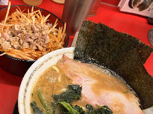 群馬でいつも大行列のためこちらに初訪問 海苔がデフォで多く嬉しい 丼が想像以上に多く大変だった