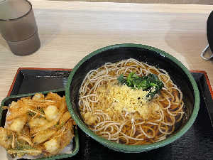 貝柱と夏野菜かき揚げのぶっ掛け蕎麦