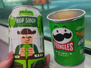 うめえビール。NewDaysで買ったプリングルスを添えて…