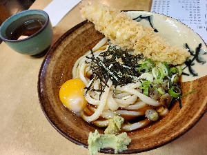 ご立派なえび天とうどん。卵が絡むとこれまた絶妙。