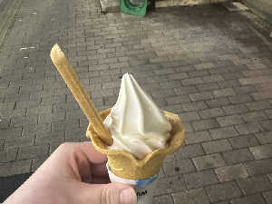 ソフトクリームはバニラに限る!スプーンもコーンでたまげた