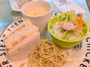小倉トーストに茶碗蒸し、サラダにパスタ 岐阜はやっぱモーニングっすよ これ食べたくて朝食つけなかった