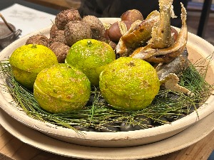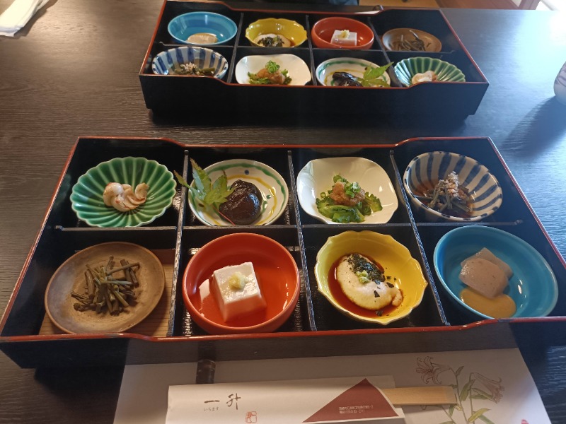 今日は鮎釜飯を追加。この山の恵みの八種前菜が丁寧に作られていて感動的に美味しいです。