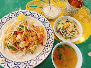 遅ランチ パッタイ!! サラダとスープとデザートとドリンク付いて1000円 生のモヤシがシャキシャキ