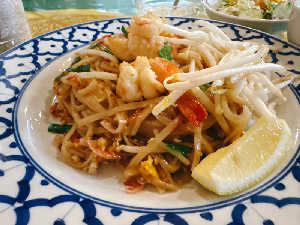 パッタイは甘めのお味♪ スープ・サラダ・デザート・ドリンク付で1000円 ランチLO 16:30
