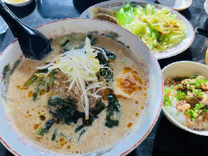 初めて行ったお店で安くて美味しいラーメン🍜久しぶりに食べたような気がする😋石田さんとセットだな