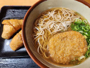 いなり付き。サウナの後に冷たいうどんが効くねえ。