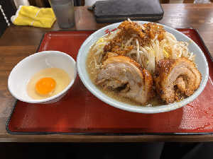 →二郎系インスパイアの高崎の人気店。期間限定、神豚🐖で美味しい🤤 →にんにく🧄と生姜🫚は入れ放題‼️