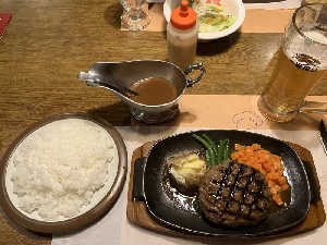 ハンバーグの概念が変わりました。これはステーキとハンバーグの中間ですね。