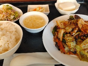 辛くてうまくてボリュームもある 平日はスープのサービスがあって、卵スープ頂きました