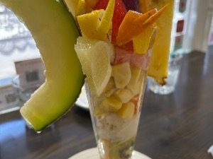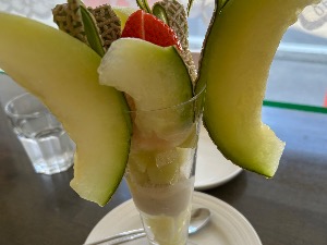 フルーツパフェとメロンパフェのダブルパンチ!だけど、千疋屋の半額。美味しくてほっぺが落ちるよ。