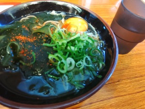 35℃の真昼の大阪の屋外にてアツアツのうどん。肌着がまた汗で湿気たわw