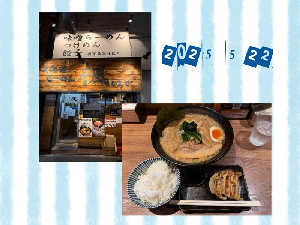 商店街を抜けて。少し粘度のある味噌らーめんペロリ。セットは鮭おにぎり。