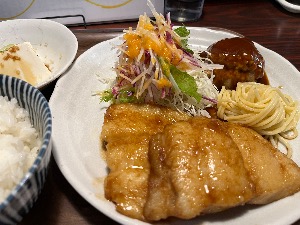 タラを想像してたら出てきたのは例の謎の白身魚。ゼラチン質が目立つ面白い食感も味付けは美味し。