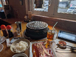 ひっそりと焼肉(意味深) マイマイ亭の窓際席が1番落ち着くかも(?)