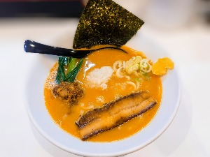 海老の香り香るスープに沢山の具材が絡み合い、 濃いめの味なので、サウナ後におすすめのラーメン!