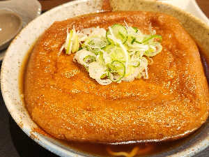 油あげの有名店らしい。 どんぶりと同じ大きさのお揚げは味が染み染みで、下のそばより食べ応えあった🤭