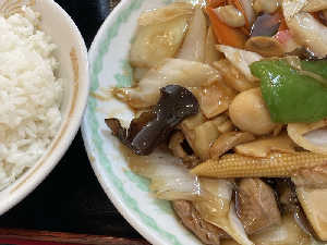 ご飯・炒飯・スープ・サラダ・小鉢がバイキング式食べ放題、に杏仁豆腐1つ付きで夜もこのお値段って