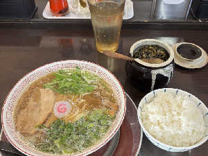 大垣で朝ラー🍜 魚介系ラーメンも美味しかったですが、セットのごはんと高菜が主役級の絶品でした😋