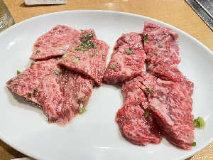 ハラミのような食感のカルビ"インサイド"と上カルビは、ともにほどよいサシでとろけるような美味しさです