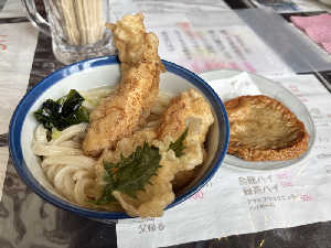 スパイシーなカレー出汁に釜たまがミックスされて美味し!🤩