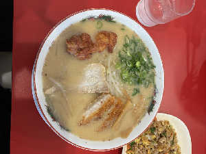 味濃いめ。厚みのあるチャーシューは味凝縮しててしっかりとした噛み心地。半チャーハンが絶品でした!!