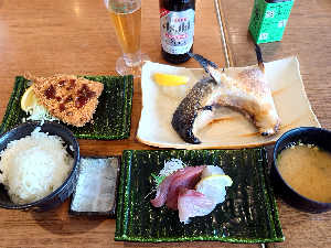 お刺し身てんこ盛り!ご飯少なめにしてもお腹いっぱい(;´∀`)