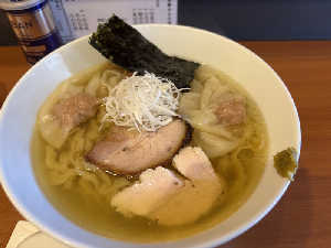 トッピングワンタン。 塩ラーメンも美味しい。 2時間近く並んだ