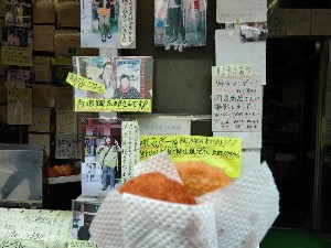 沢山の芸能人の方が訪れていたので…カリカリで少し甘くてねっとりしていて美味しかった(100円)