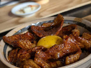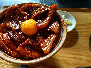 ルスツ豚のロースを使った豚丼。タレの味が濃すぎず、豚肉の旨味、甘さを感じられて美味しい🥰