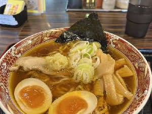 あっさりの生姜が入った中華そばにとろとろの煮卵とチャーシューでうまうま😋