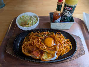 近くではないけど、昼に佐賀で食べたナポリタン。鉄板焼きは名古屋に多いらしい。