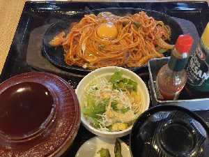 鉄板ナポリタンの時点で全員優勝です。少し塩っけがあるナポリタンとご飯の相性がバツグン。