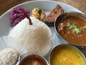 3つのあいがけカレーとタンドリーチキン。スパイスがつんと美味しい!!