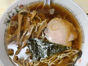 魚介出汁の醤油ラーメン。ワンタンはとろける感じで美味しい!