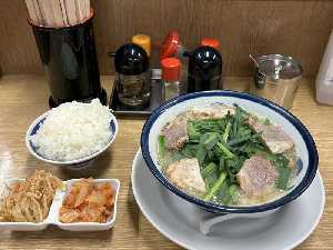 この状態だと単においしい豚骨ラーメン。ここに取り放題の辛ニラとキムチを好きなだけ乗せて好みの南蛮に。