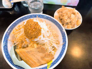 天地返し封じ盛り。クタ野菜なんで結構な量。山ふじ関連店なのかな、シャリシャリニンニクは臭いが残るね。