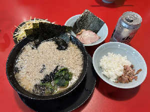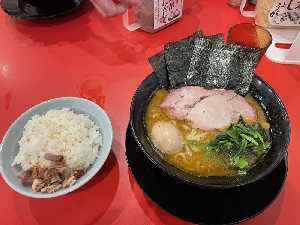 王道家直系の家系ラーメンはカエシのキレと鶏油の旨味が最高です。ライスが進む悪魔的なラーメンでした。