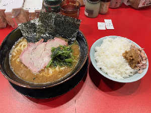 濃厚な家系ラーメン! 麺の硬さと味の濃さと油の量を選べる! 初心者🔰には味はうすめがおすすめ!
