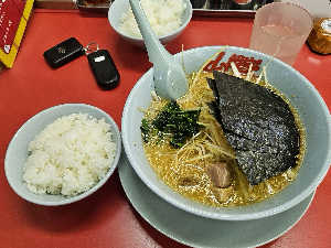 朝は初訪問 お手頃価格の朝ラーメンをチョイス 着丼とともに替玉を追加 朝からガッツリ!