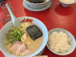 朝は初訪問 お手頃価格の朝ラーメンをチョイス 着丼とともに替玉を追加 朝からガッツリ!