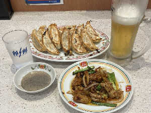 麺少なめに餃子を添えて。ニンニク激マシが無念の売り切れ(2回目)