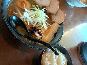 写真は夫の辛味噌。塩は優しい味で美味。鶏と豚2種類のチャーシュー入り
