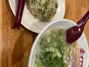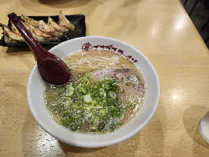 久しぶりに博多豚骨ラーメンと一口餃子を食べました。😋🍴