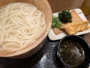 きつねうどん、かしわ&かぼちゃ天、ハムカツ