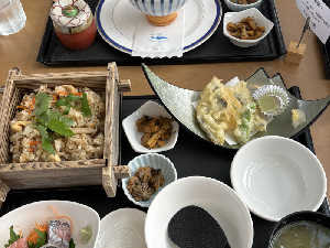 お刺身に天ぷらにキノコご飯とアサリと色々てんこ盛りで嬉しい!