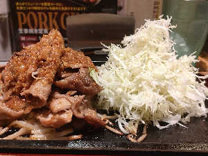 ハラミとスマッシュハンバーグの定食。ハンバーグがカリカリで美味い!