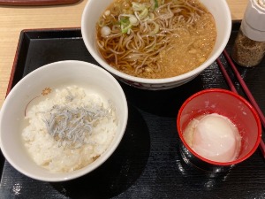 しらすが想定外に少なくて、生卵じゃなくて温泉卵で納豆セットにすればよかったと後悔😢