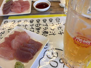 ドリンク3杯+お刺身+てびちやマース煮などから選べる一品、という神コスパ