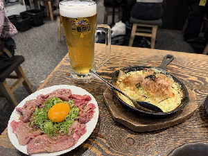 レアしゃぶタタキ、山芋とろろ鉄板焼